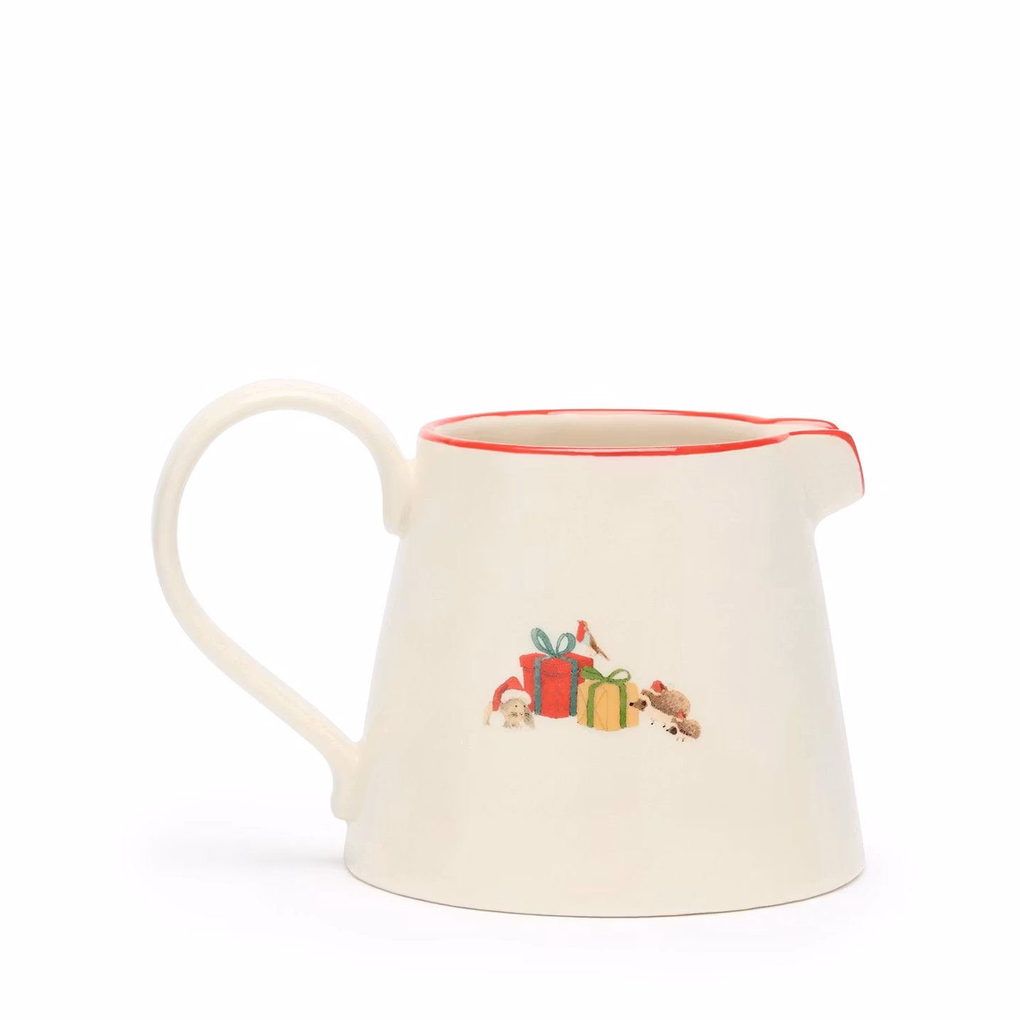 Skapa en festlig stämning med denna Mysiga Jul Stora Stengodskanna, som har Sophies vackra design på båda sidor. Med sin generösa kapacitet på 500 ml och nostalgiska illustrationer - en dekorerad julgran och glada skogsdjur - är den perfekt för allt från att hälla mjölk, grädde eller sås till att hålla säsongens blommor på den stora dagen. Tillverkad av stengods, är det en pjäs som ger värme till ditt kök och matbord. Kontrasterande kant.