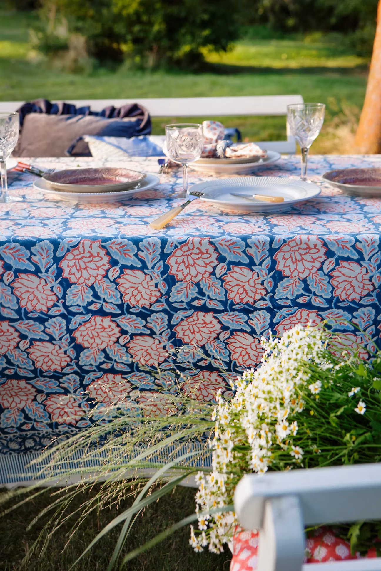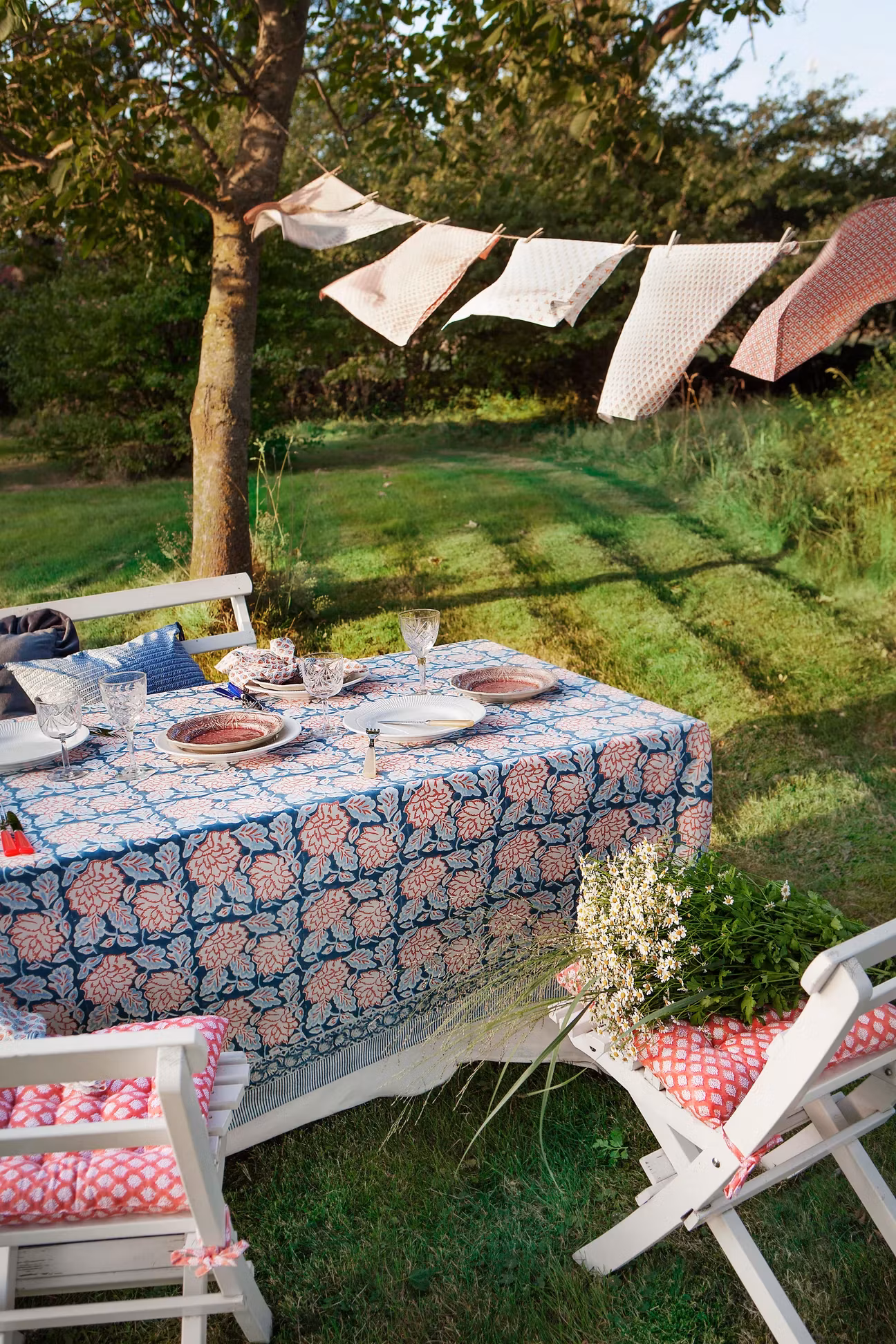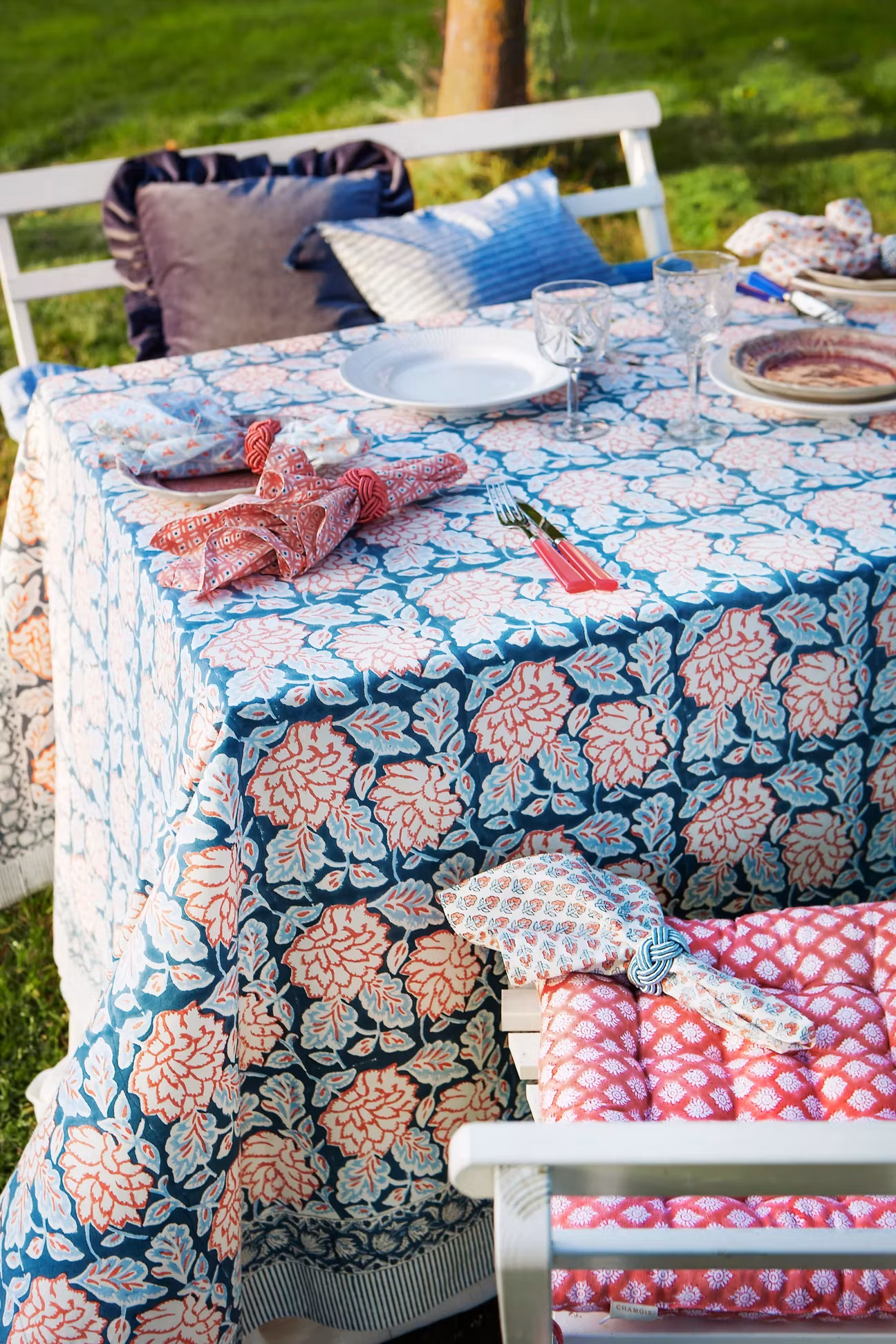 Upplev en sofistikerad matupplevelse med denna glada Dahlia-duk, med ett livfullt mönster och livfulla färger