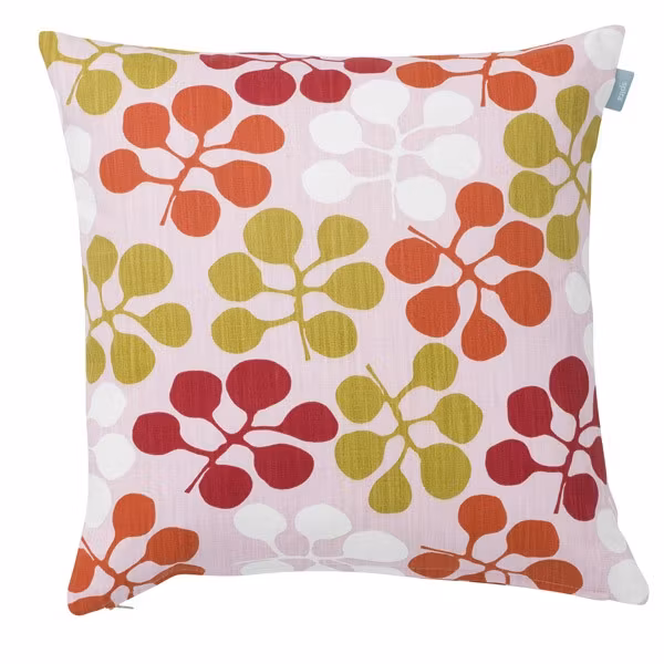 på rosa botten. Tryck på kuddfodralets båda sidor. Dragkedja nedtill. Matcha gärna med andra kuddfodral från Spira of Sweden. Innerkudde ingår ej.