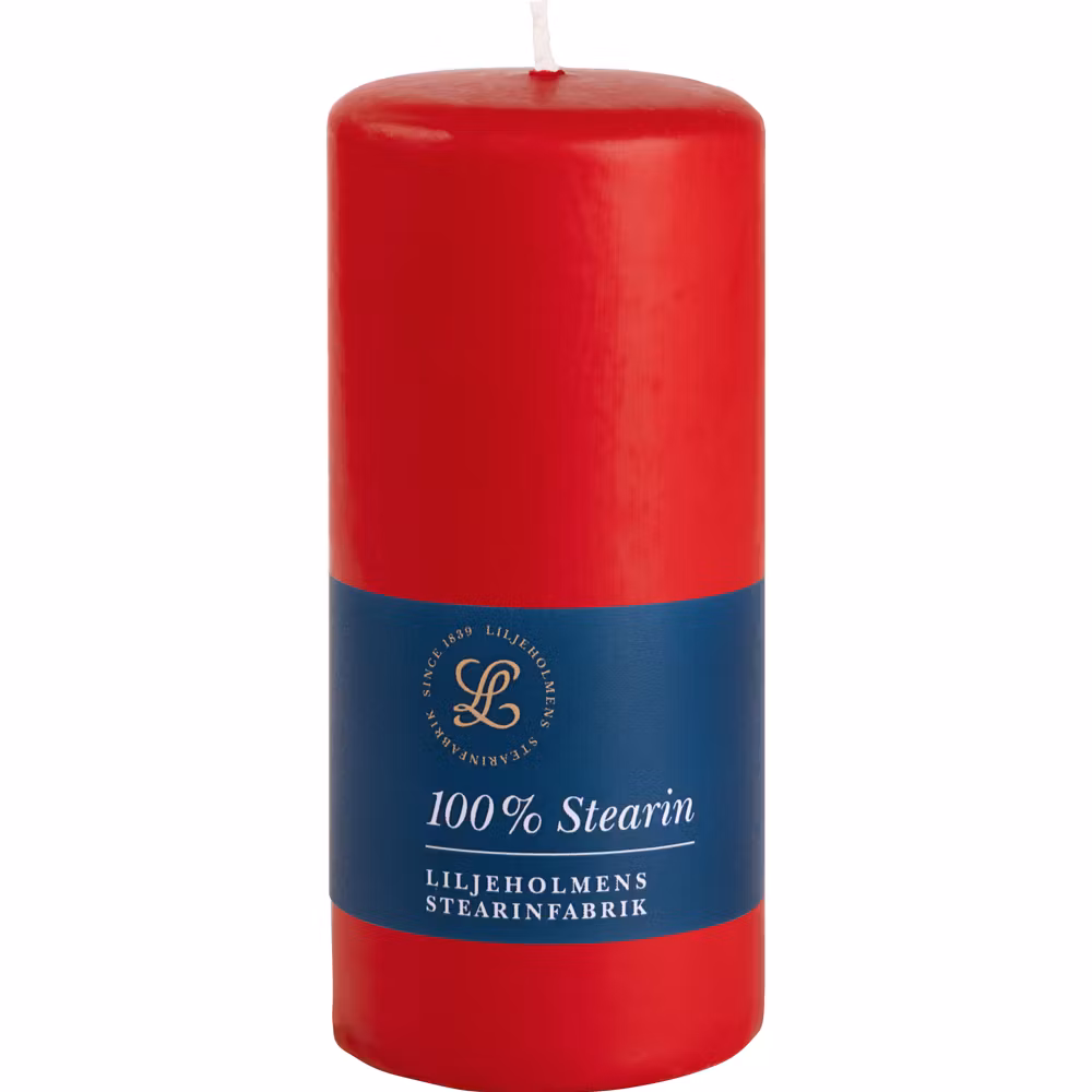 Liljeholmens blockljus i färgen röd, ger en omedelbar känsla av tradition och högtid. Tillverkad av 100% stearin brinner ljusen med en sotfri låga. Går med fördel att kombinera med Liljeholmens ljus i gran eller vita stearinljus för en traditionell och stämningsfull julkänsla. Ljuset är Svanenmärkt och RAL-certifierat.
