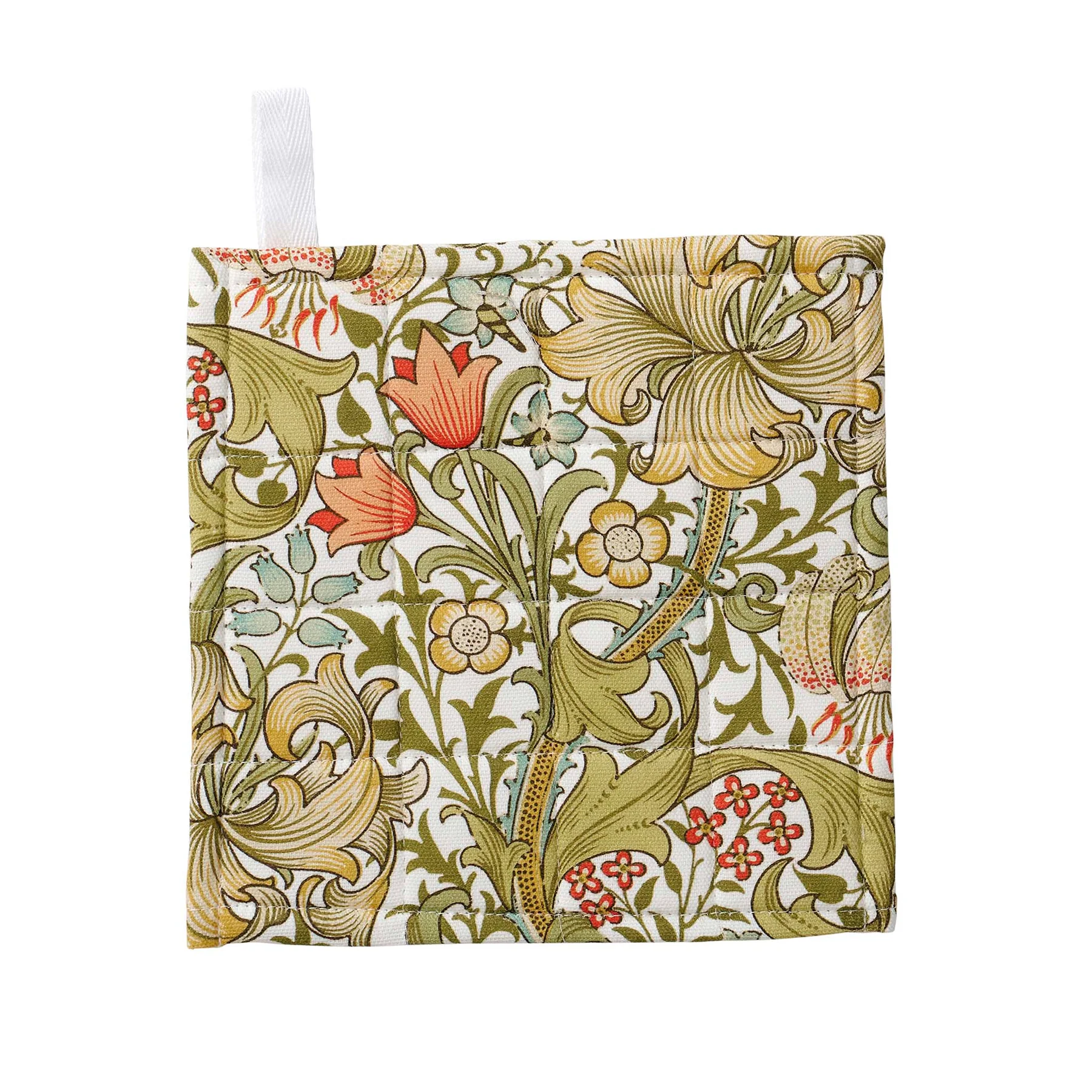 Skydda händerna med stil i köket med denna vackra grytlapp i det eleganta Golden Lily‑mönstret från Klippan Yllefabrik. Grytlappen är tillverkad i 100 % bomull och har ett dekorativt blommönster som ger köket ett sofistikerat och livfullt uttryck samtidigt som det är funktionellt för vardagens matlagning. Mönstret är inspirerat av klassiska blommotiv och pryds av stiliserade blad och liljeliknande former som skapar en tidlös, naturinspirerad känsla.