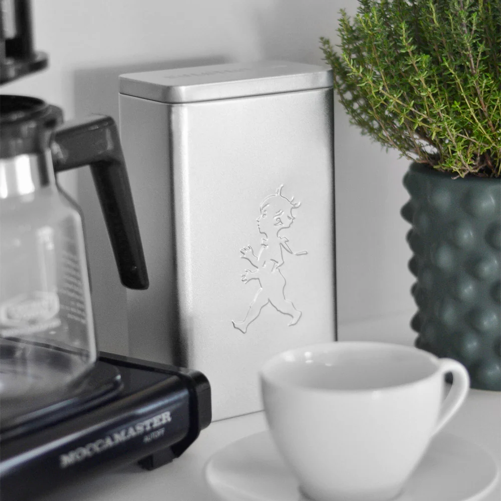Förvara ditt kaffe med elegans och funktion med Solstickans kaffeburk i stilrent silver. Denna burk är utformad för att ge ditt kaffe bästa möjliga förutsättningar att behålla sin smak och arom – samtidigt som den blir en snygg detalj i köket.