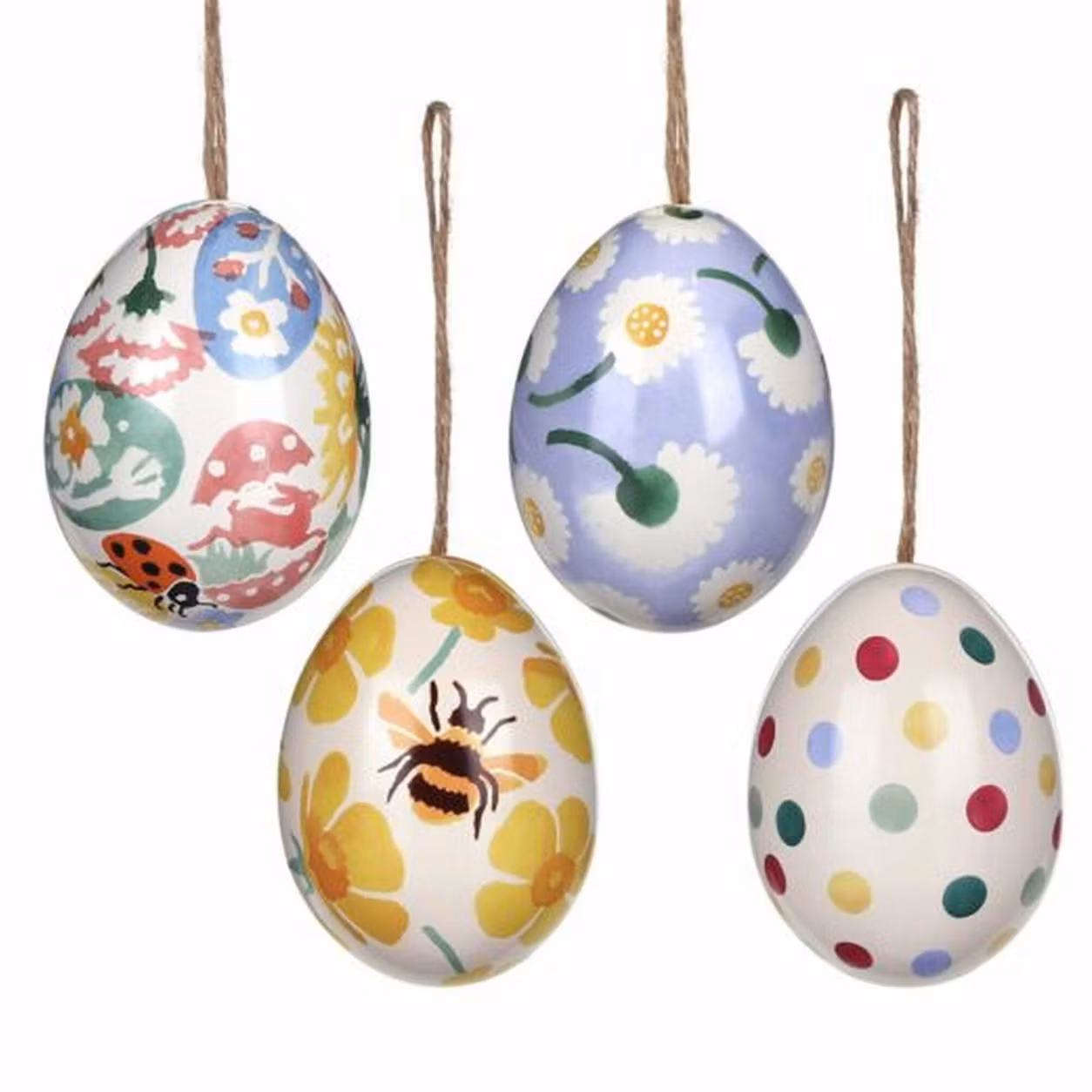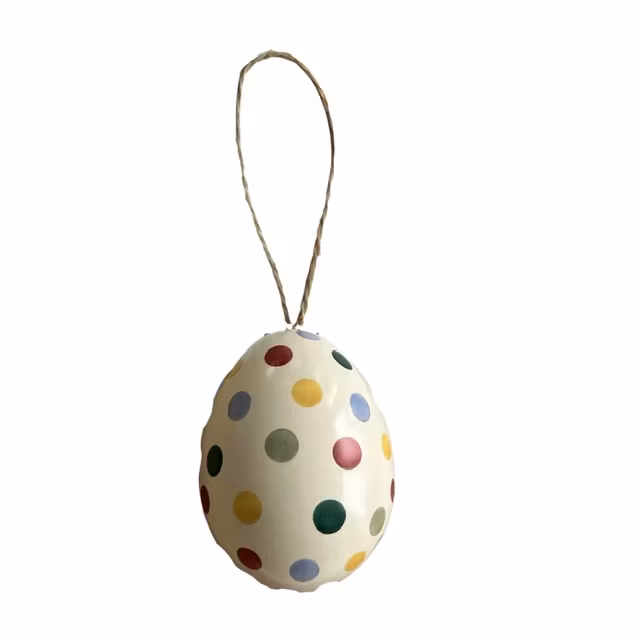 Fira vårens och påskens ankomst med charm och detaljer från Emma Bridgewater, där klassisk brittisk design möter lekfull funktion i varje liten dekorativ detalj. Detta lilla mini plåtägg med hänge är en söt och stilfull dekoration som passar perfekt i påskriset, på en gren i vasen eller hängandes i fönstret. Ägget är tillverkat i metall (plåt) och pryds av olika mönster, äggen går att öppna.